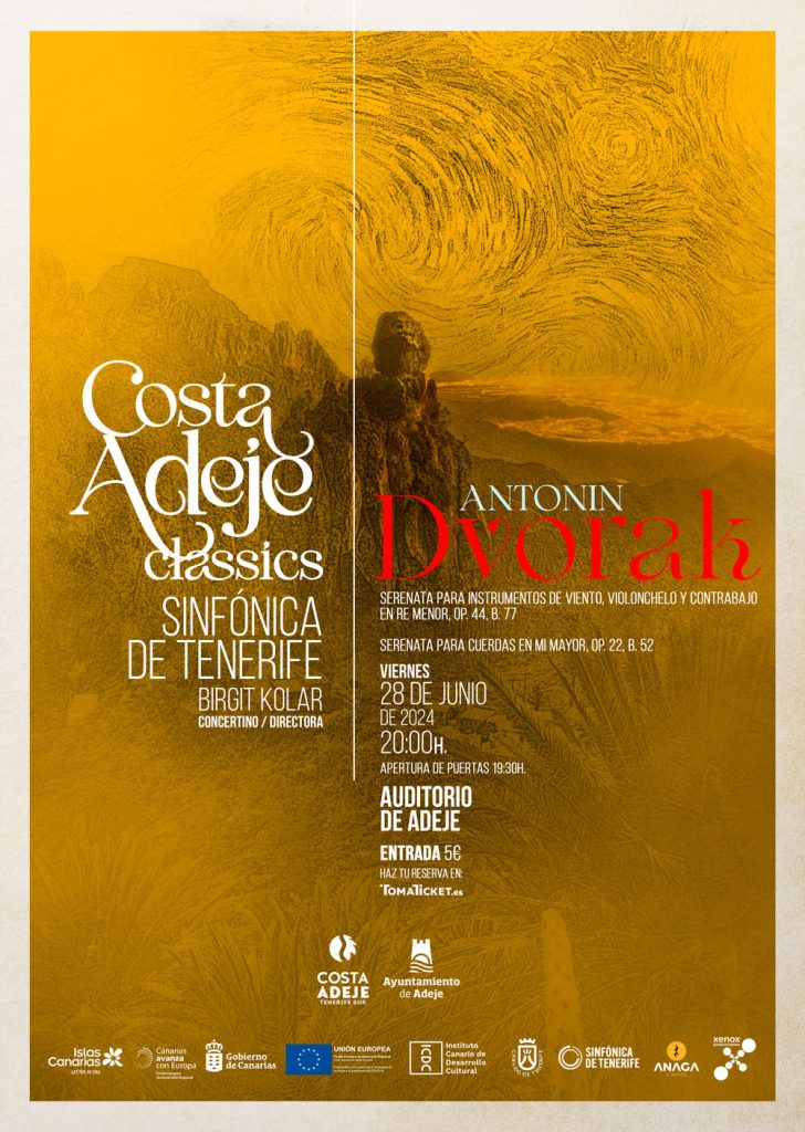 We are pleased to announce the participation of the Tenerife Symphony Orchestra in a chamber format, together with the outstanding Concertina-Conductor Birgit Kolar, who will accompany us on this special occasion. They have prepared a carefully designed program that includes two masterful pieces: the serenades of Antonin Dvorak. In this presentation, both the orchestra and the conductor put themselves at the service of the composer's mastery, ensuring a faithful and passionate interpretation of his works, which promises to provide an unforgettable musical evening for all attendees.